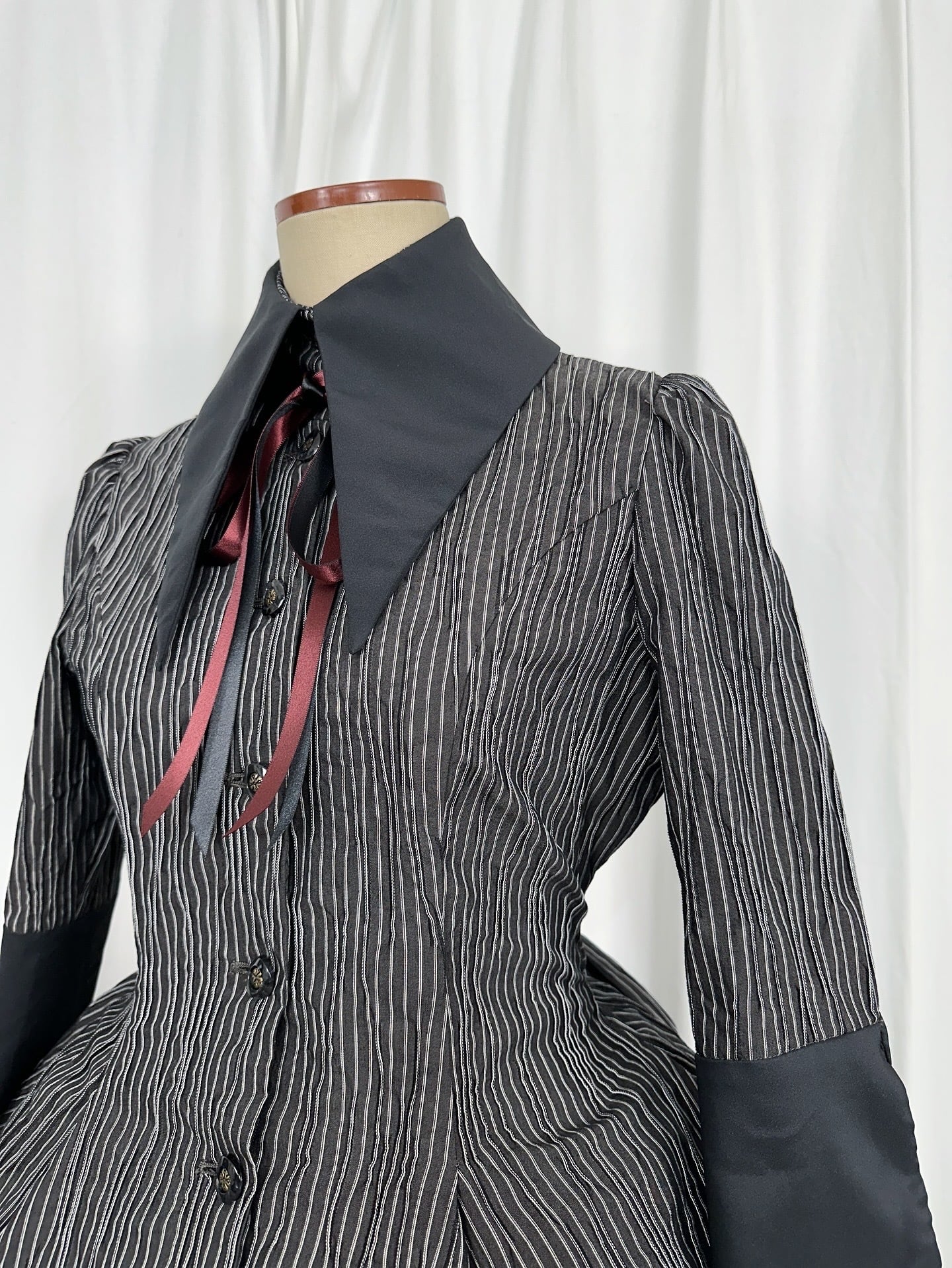 また、ウエスト背面には大きなリボンが付帯されており、ご自身の身体に合わせて細く可愛く結い上げて頂けます