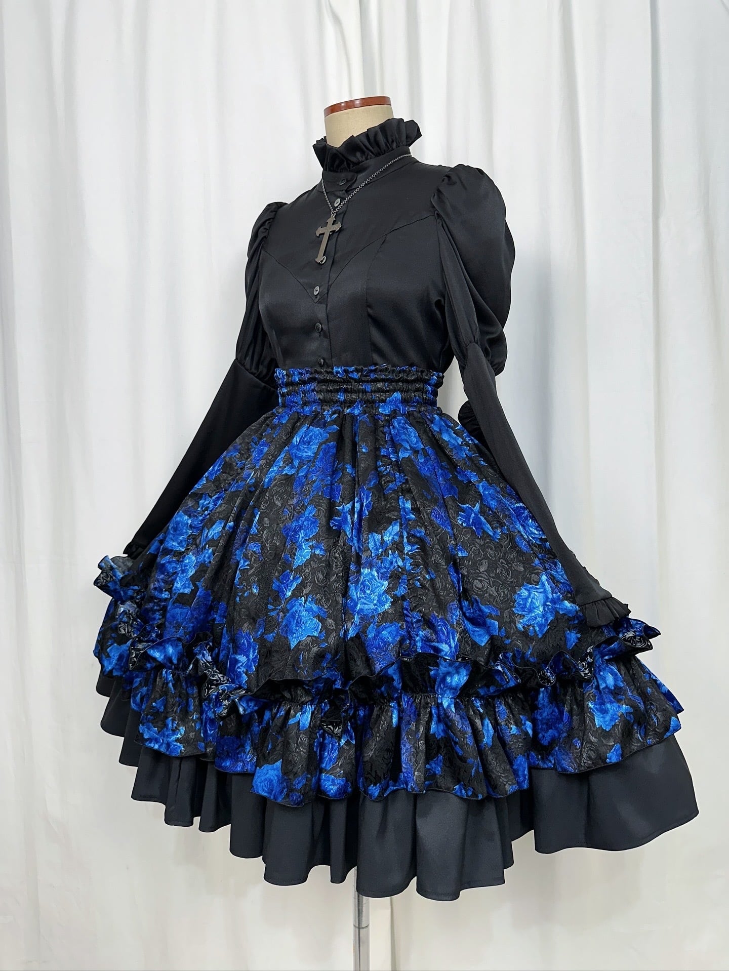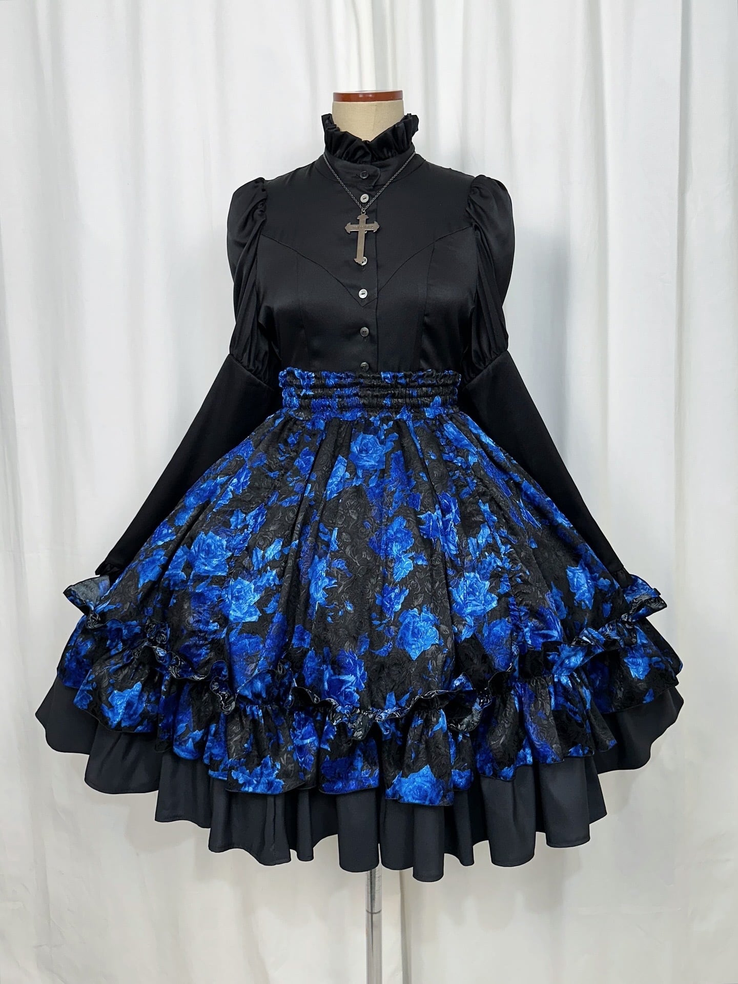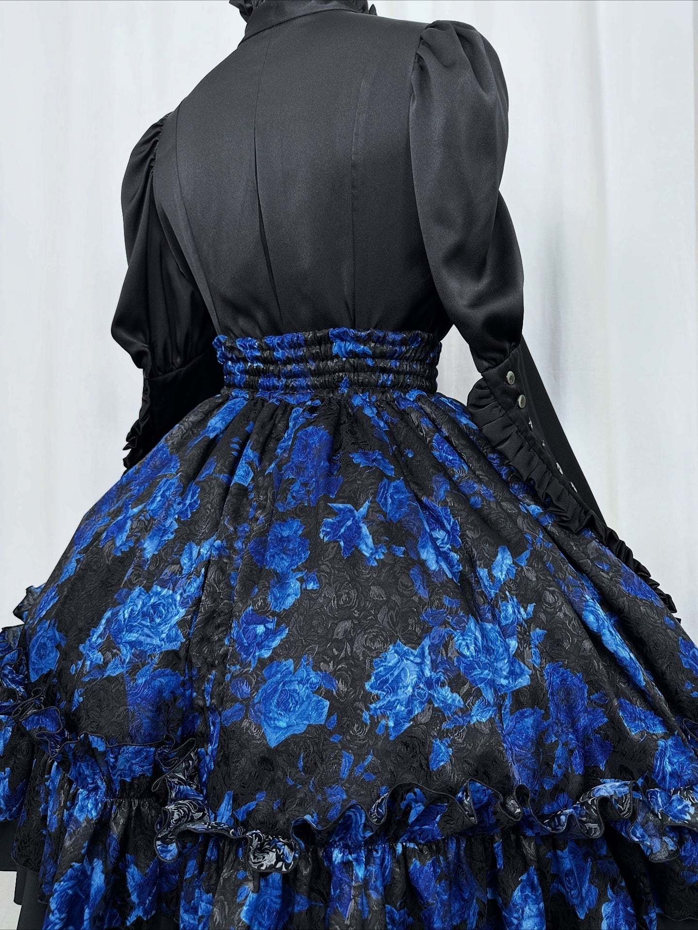 ロイヤルブルーローズ・ジャカード生地:ポリエステル100%