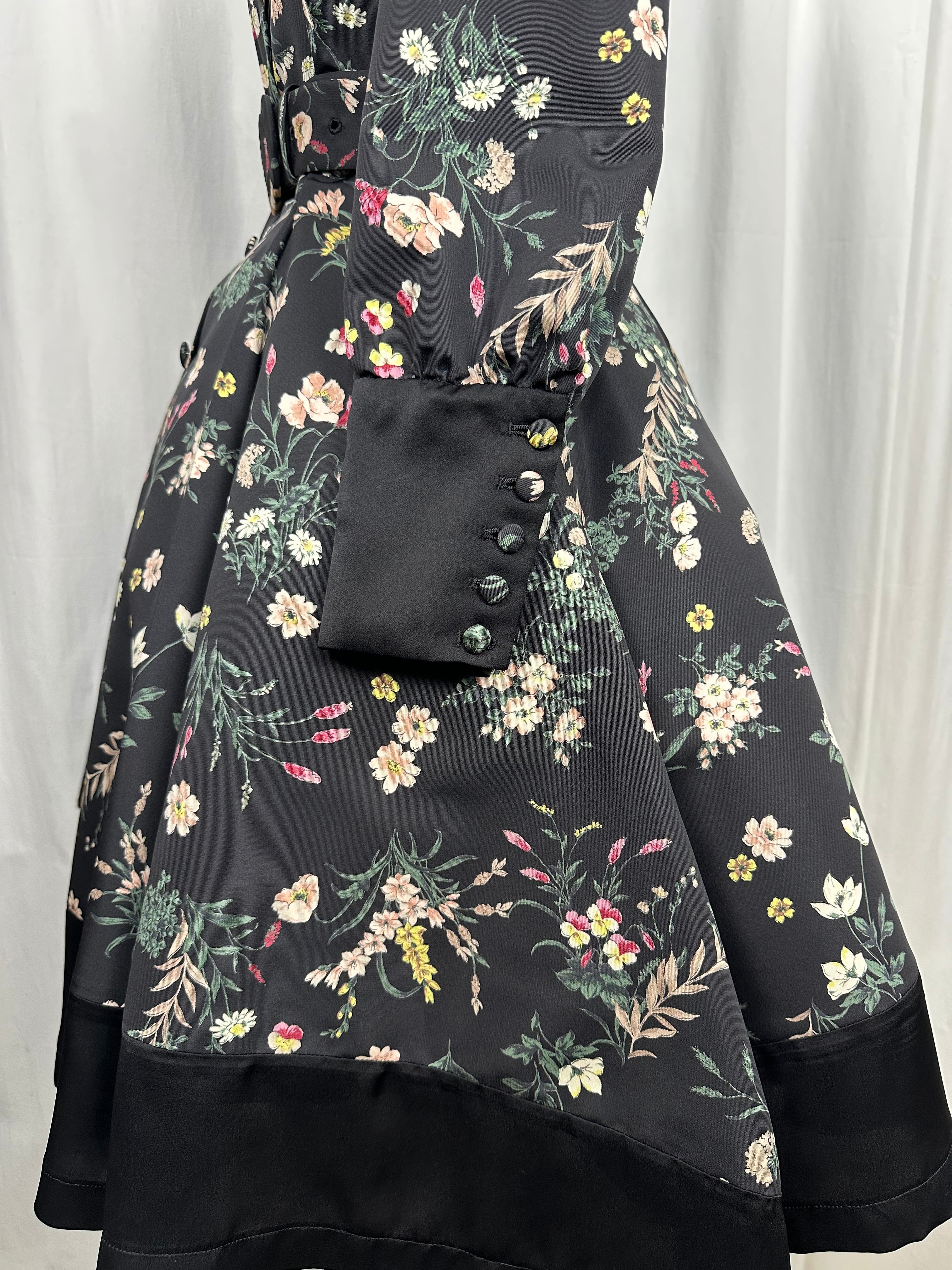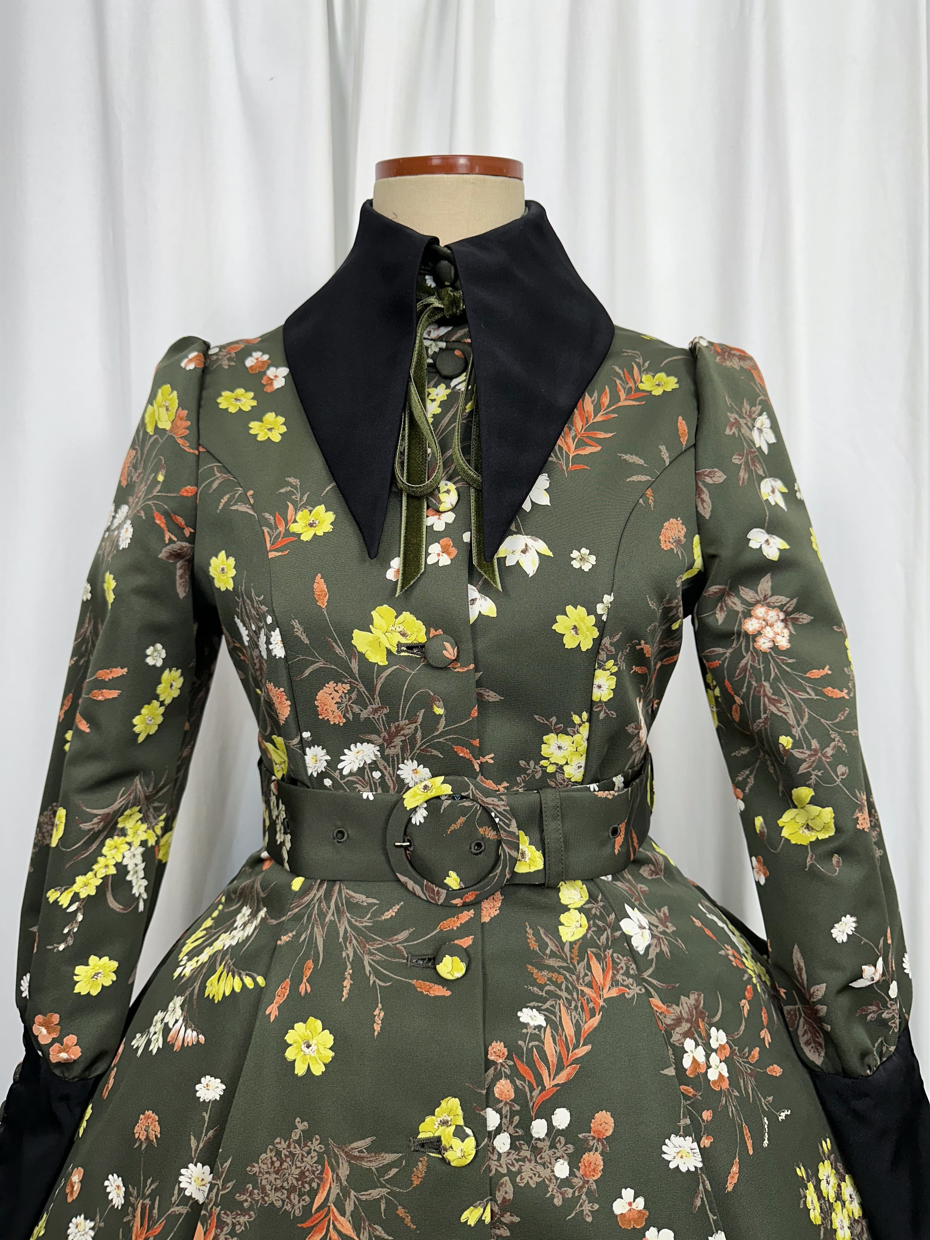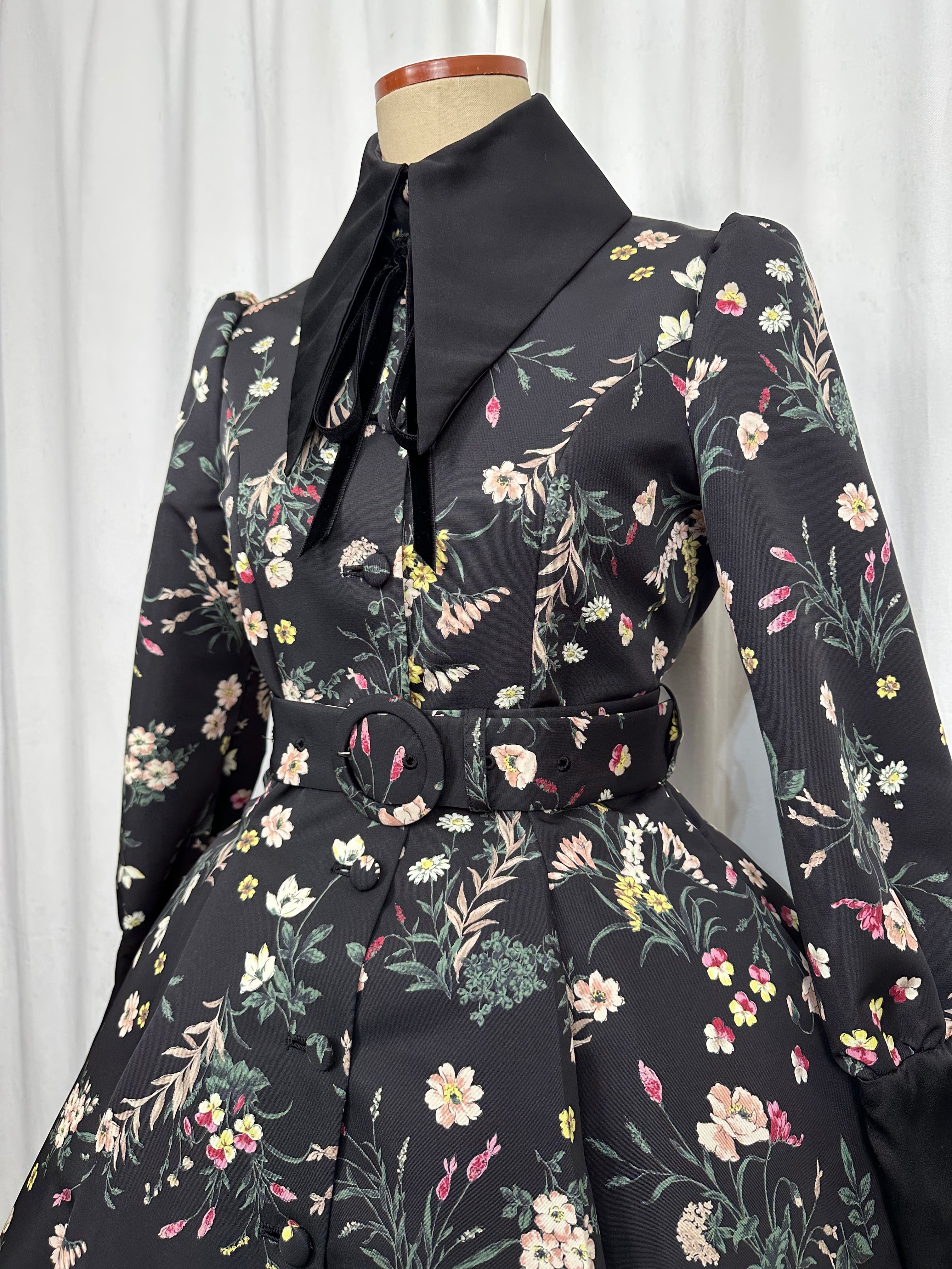 ヴィンテージの壁紙や古いタペストリーを思わせる、装飾的な花柄プリントのグログラン生地を使用