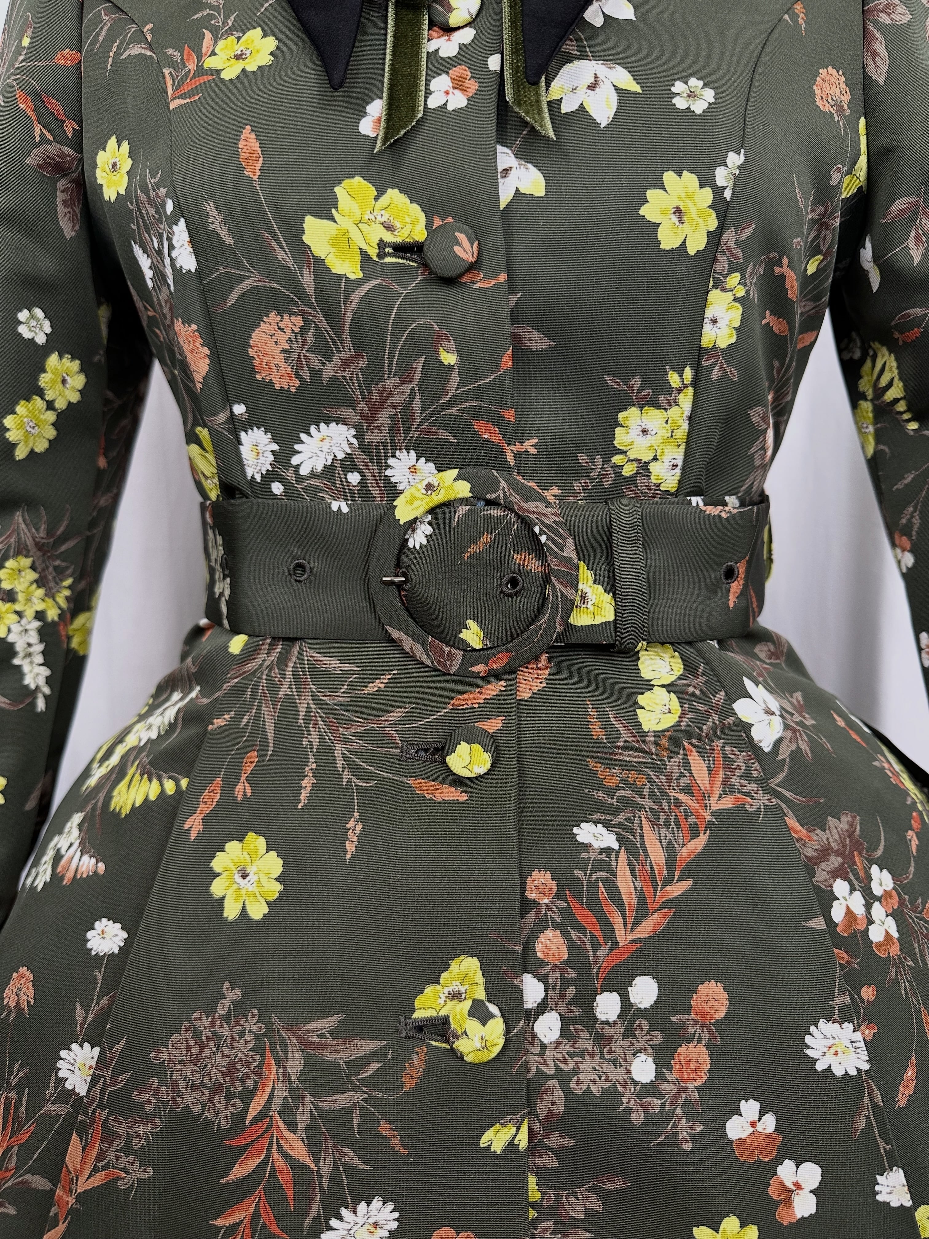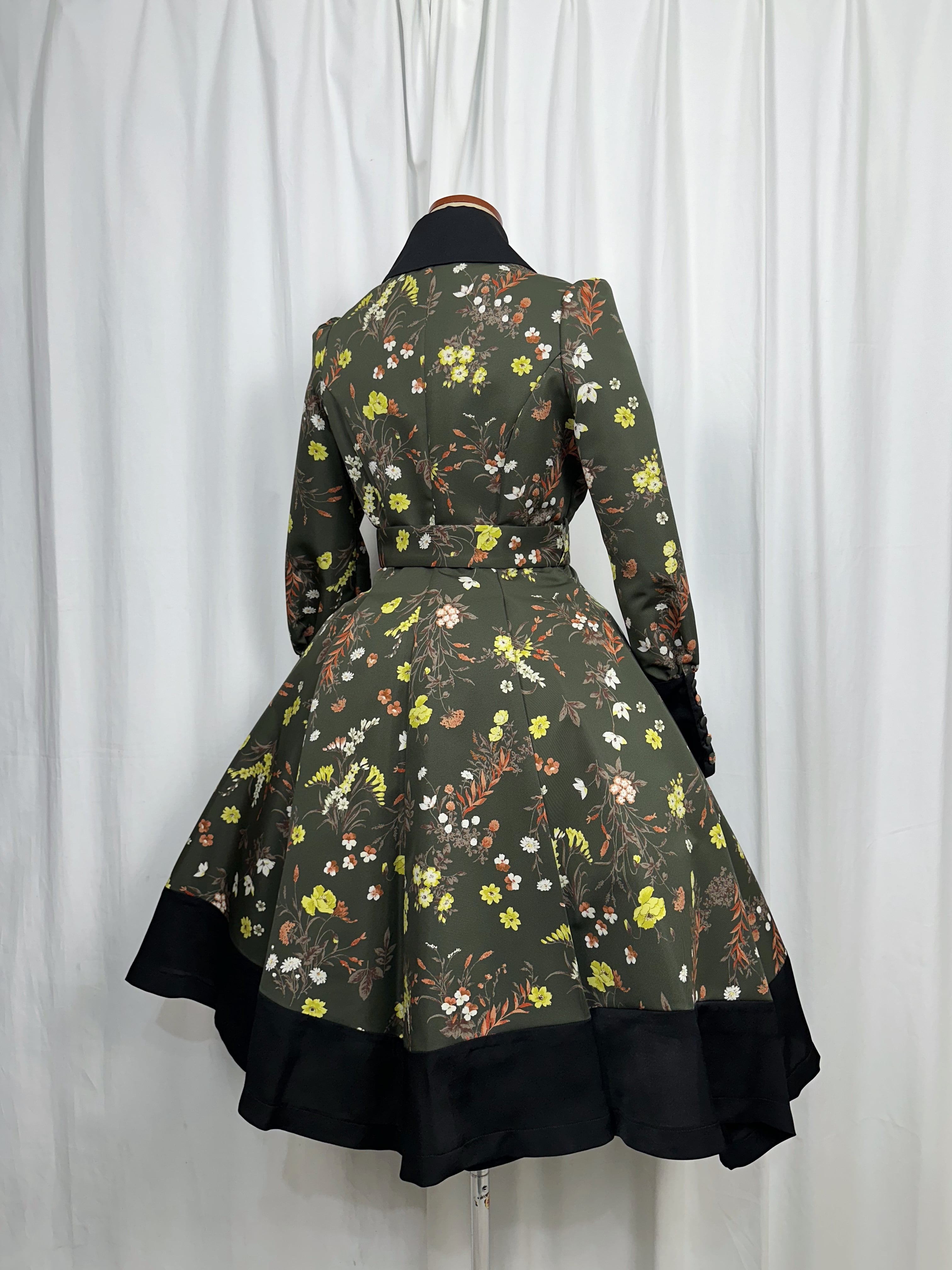 ワンピースと同じ布で職人自らが1点1点手で制作した丁寧なクルミ釦をふんだんに使用しております