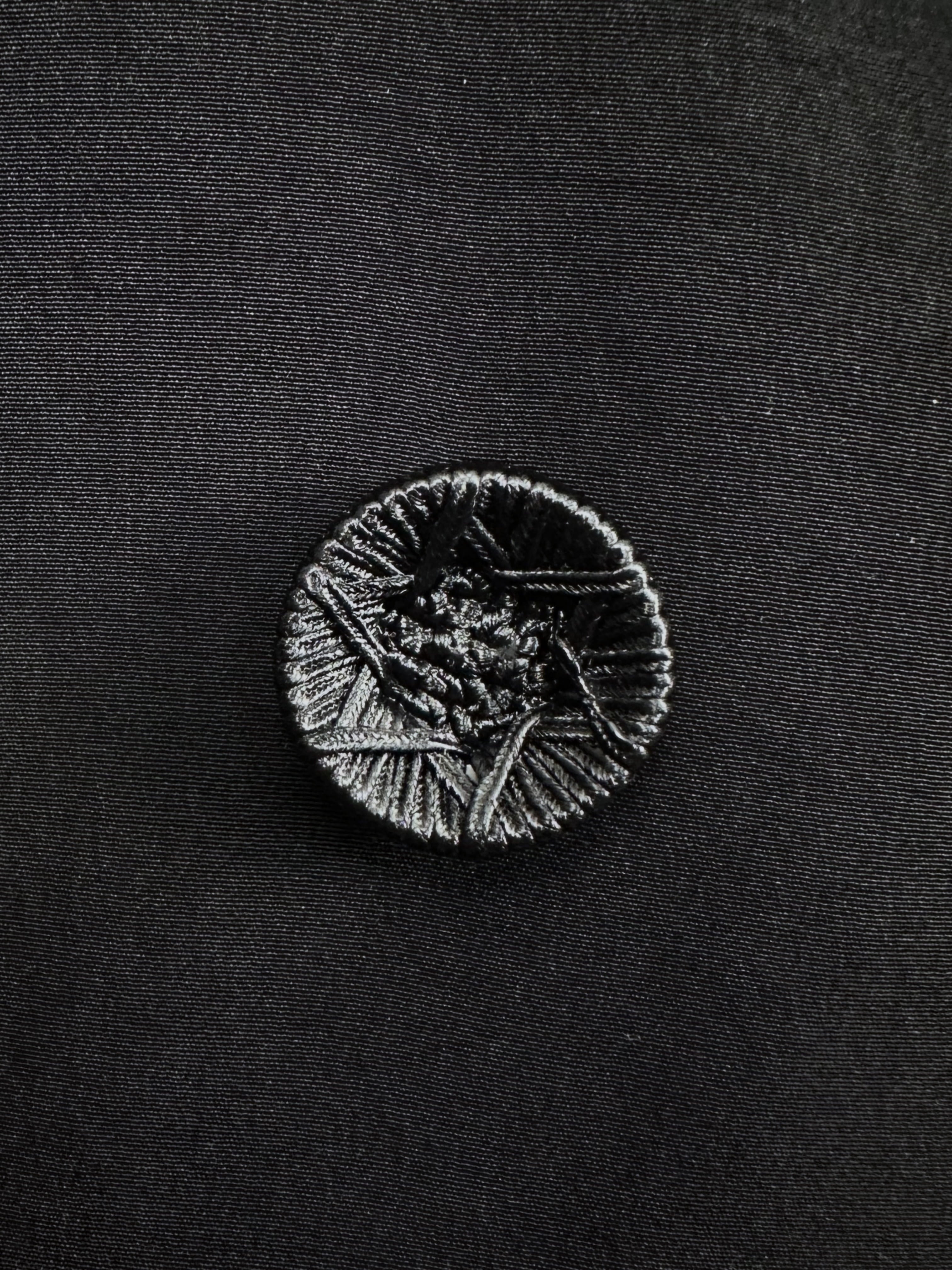 裏釦は月明かりを閉じ込めたような仄暗い輝きを忍ばせるムールシェル釦を使用しました