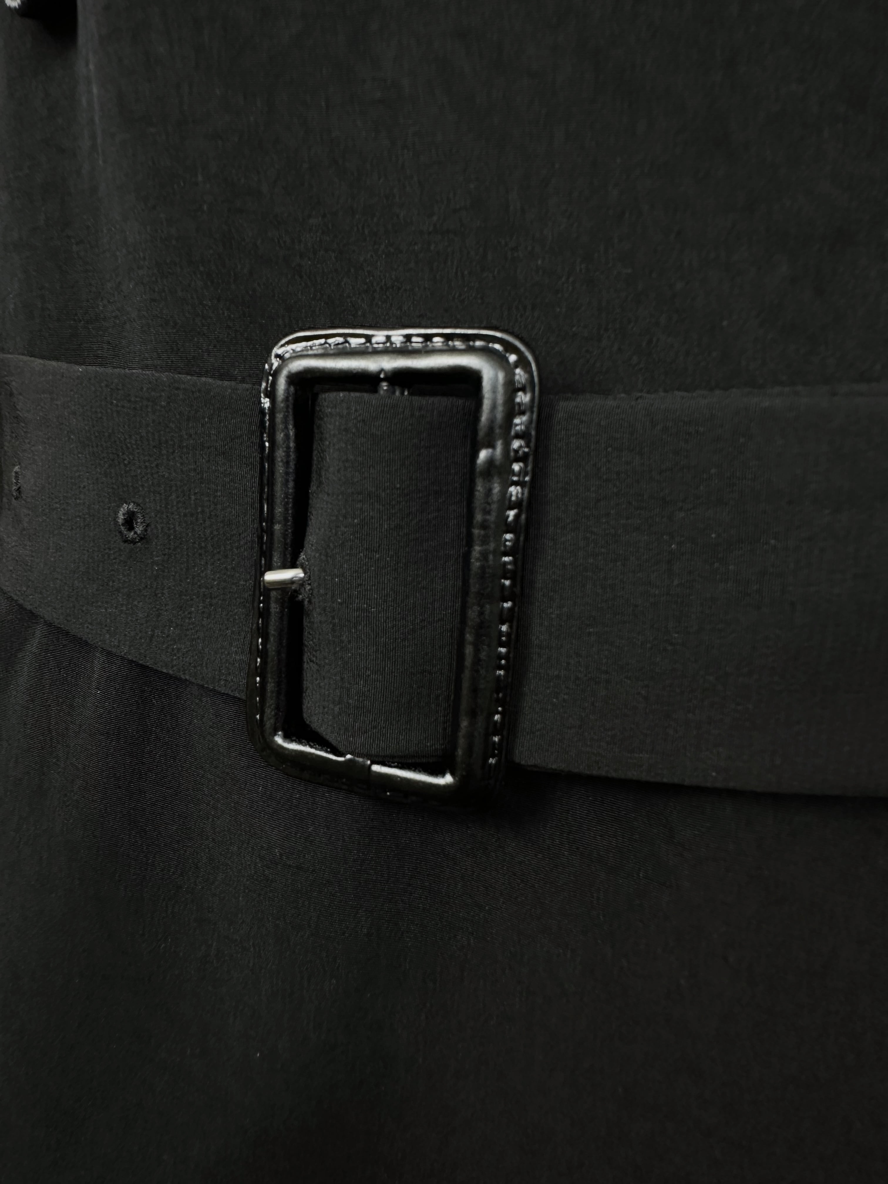 共布のウエストベルトは前で端正に留めるほかポケットへ差し込んだりと装いに合わせてさまざまな表情をお楽しみいただけます