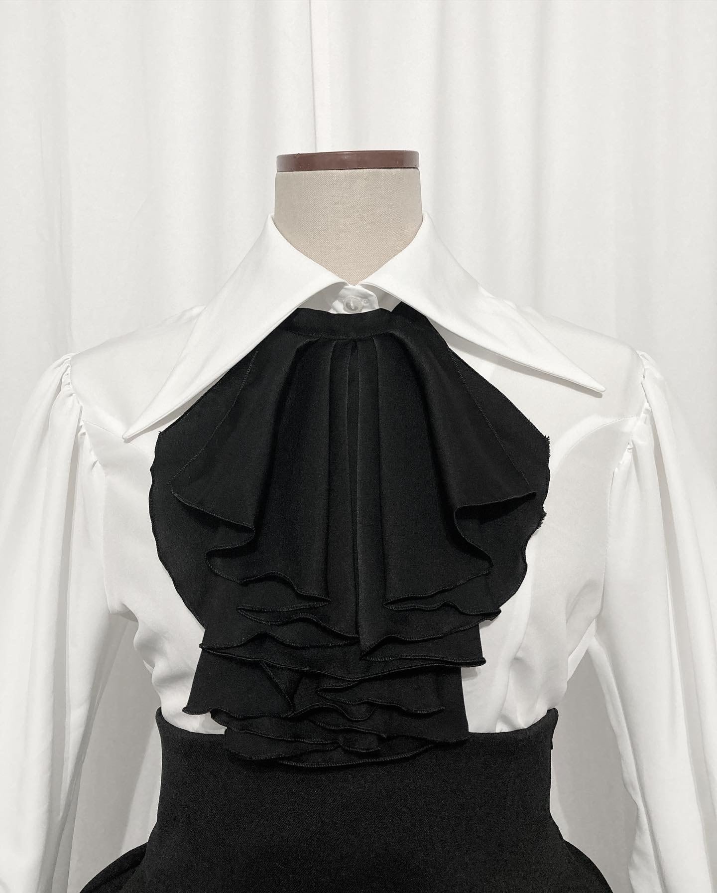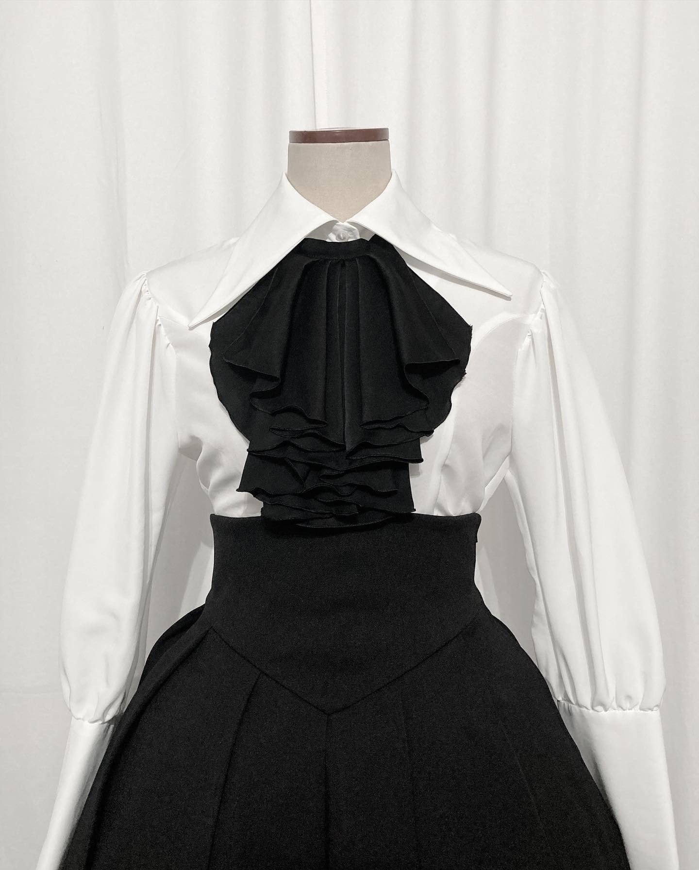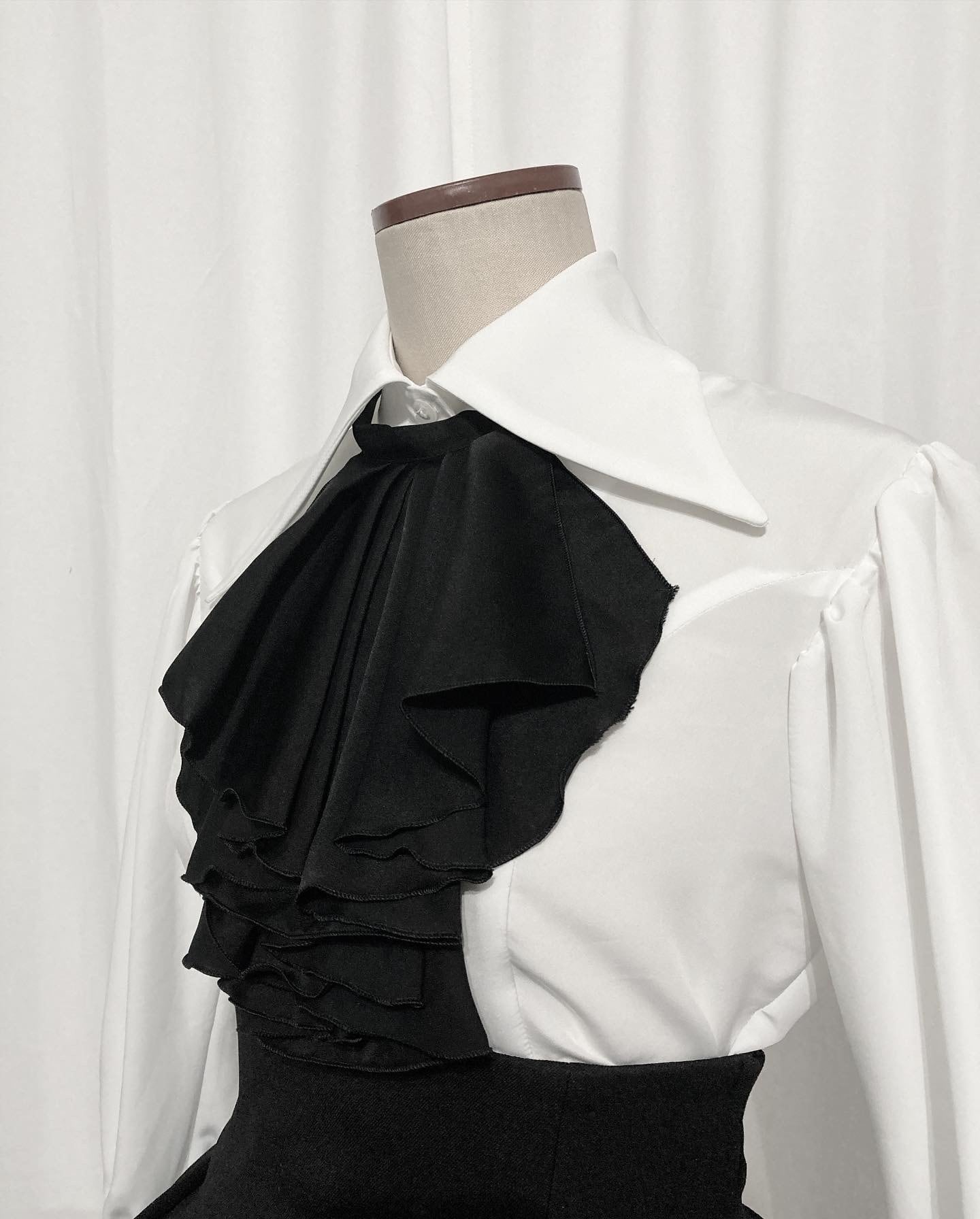 クラシックデザインから着想したジャボタイはサーキュラー状に取られており、たっぷりととられた布分量が特徴的です