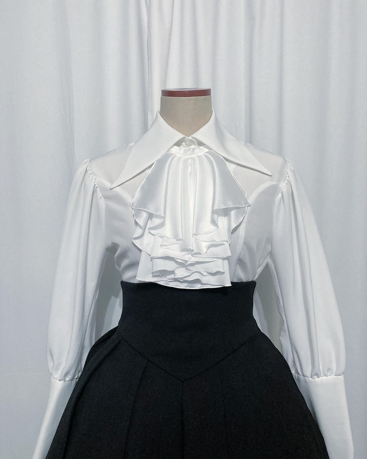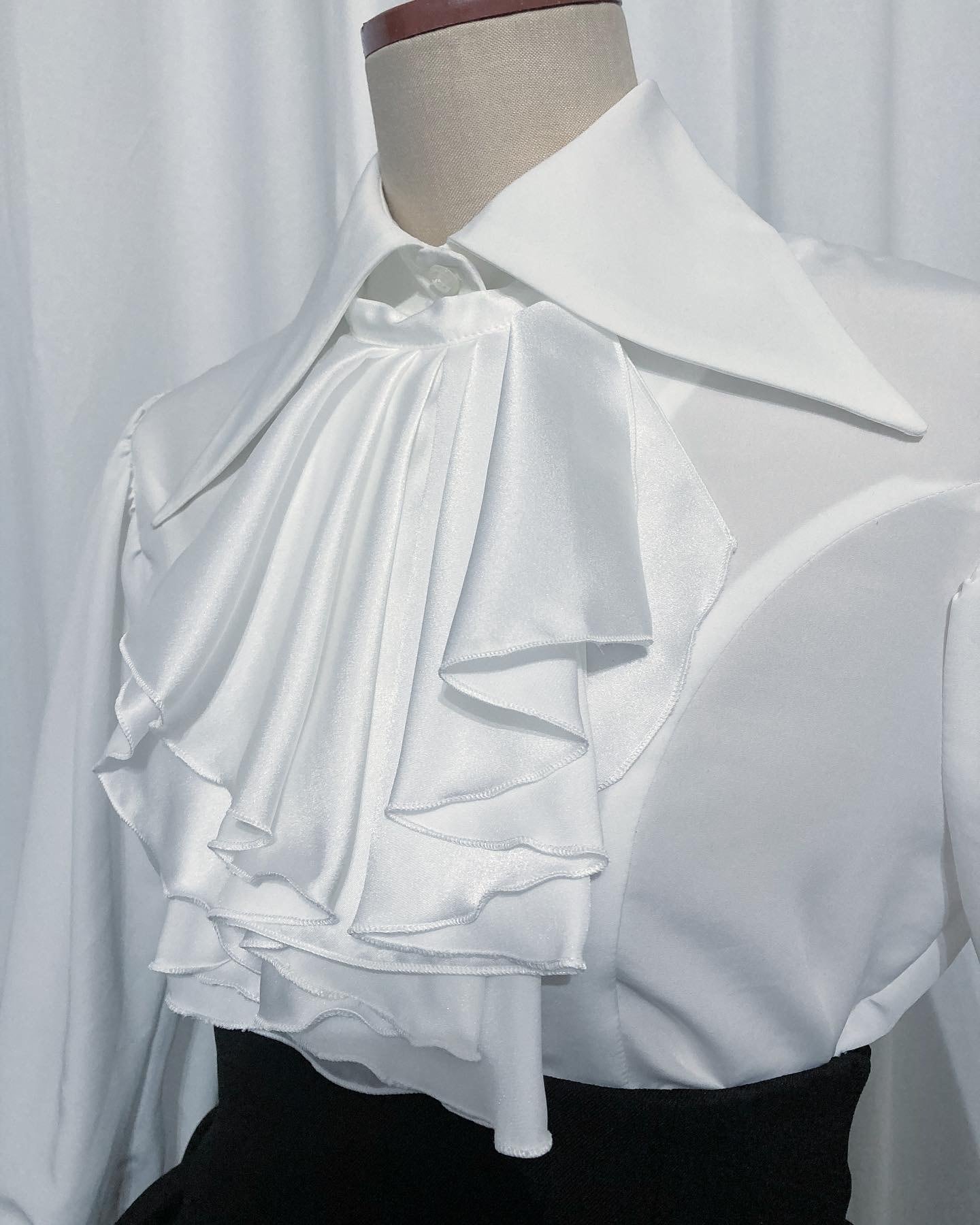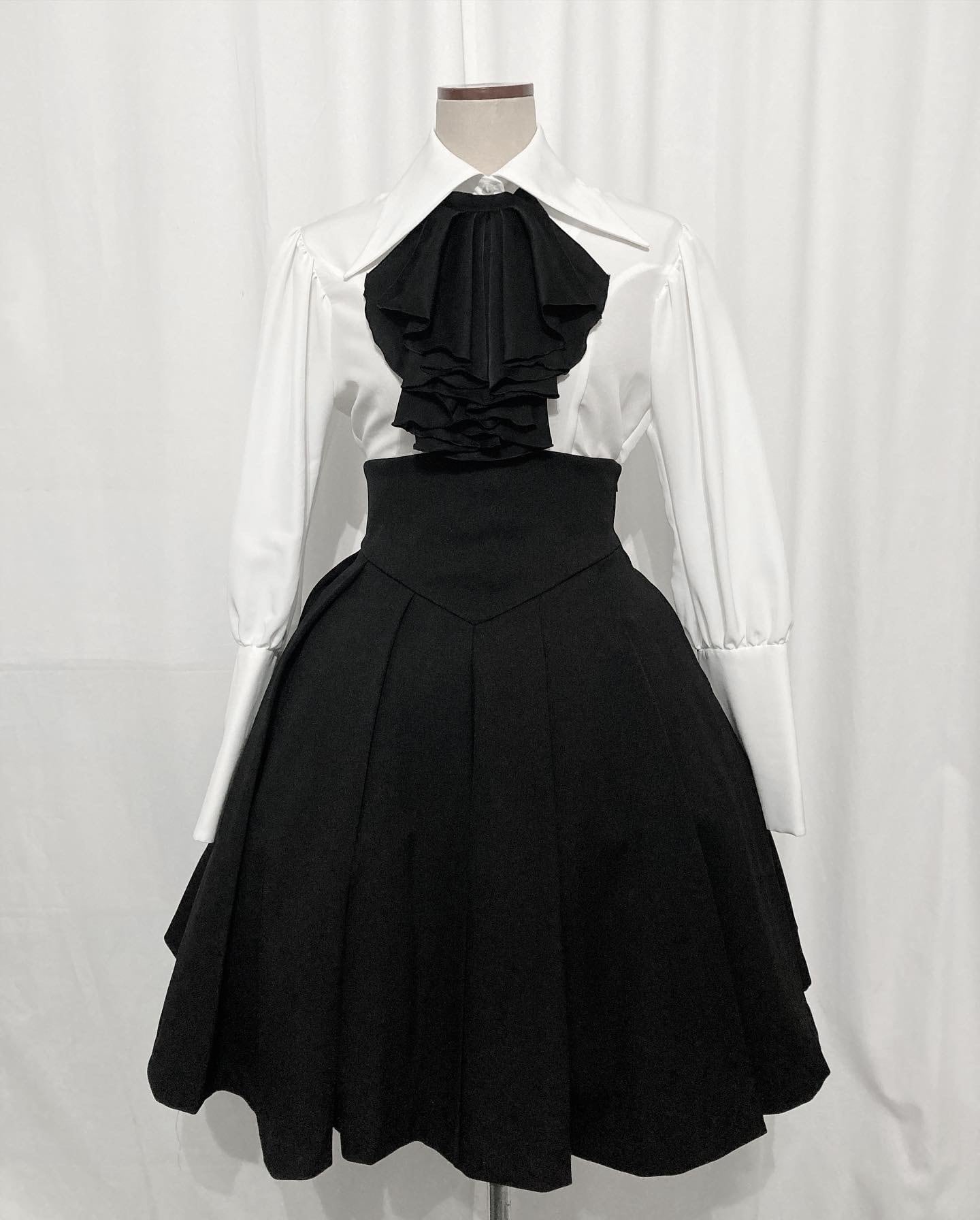 クラシックデザインから着想したジャボタイはサーキュラー状に取られており、たっぷりととられた布分量が特徴的です