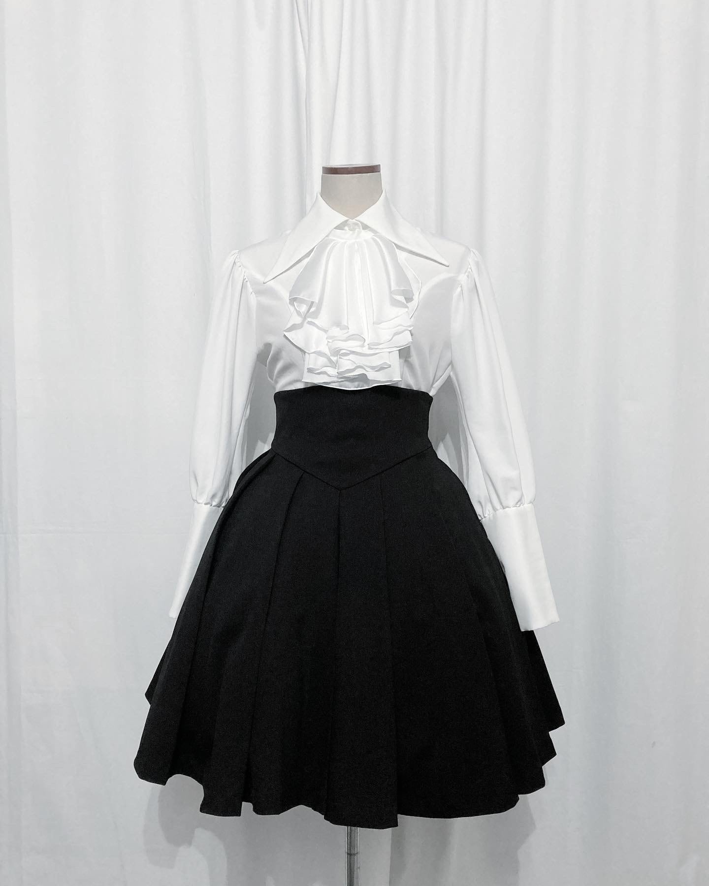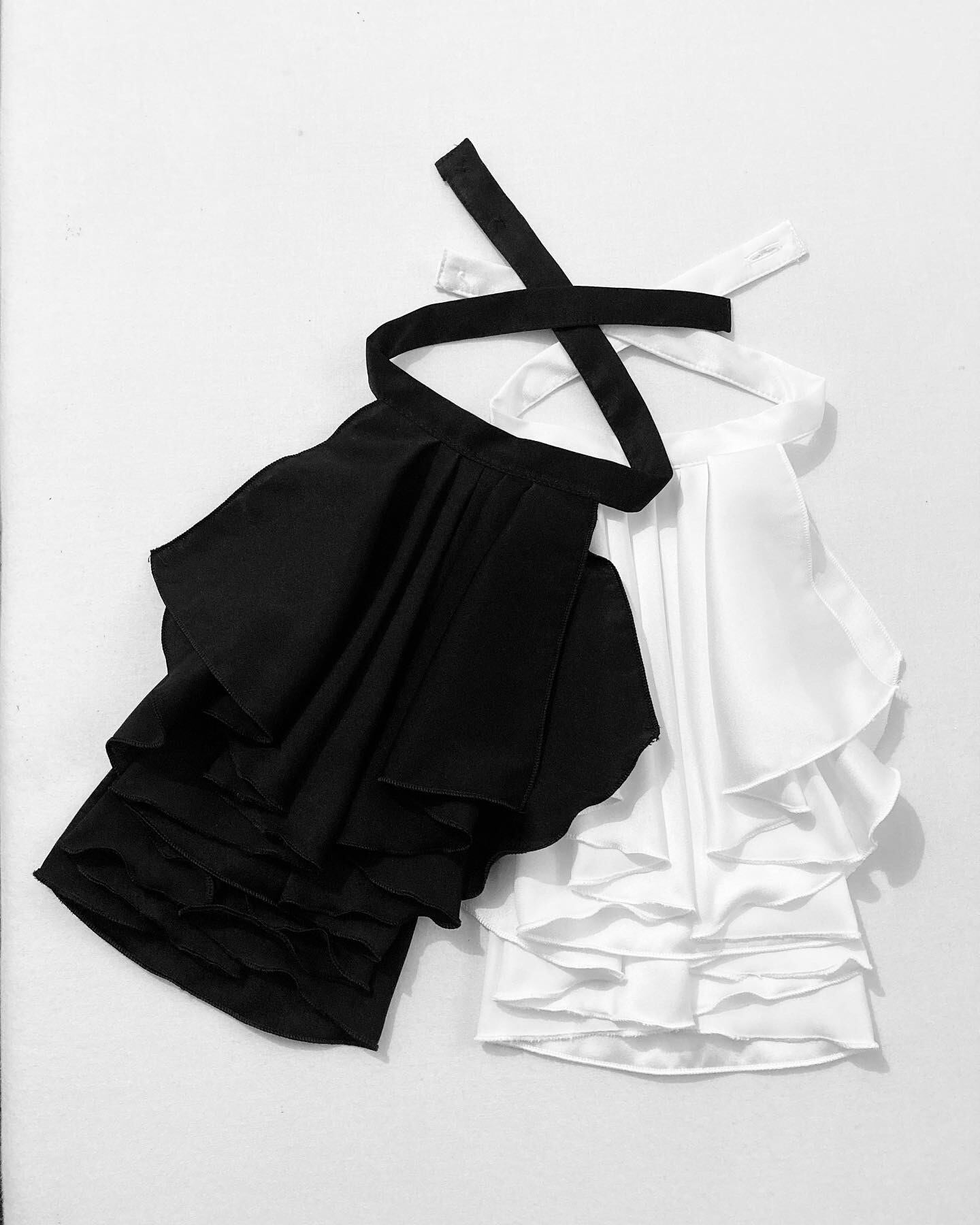 サーキュラーフリルを上下2段に重ねることで厚みを出し、生地の陰影や折り重なりをお楽しみ頂けるようになりました