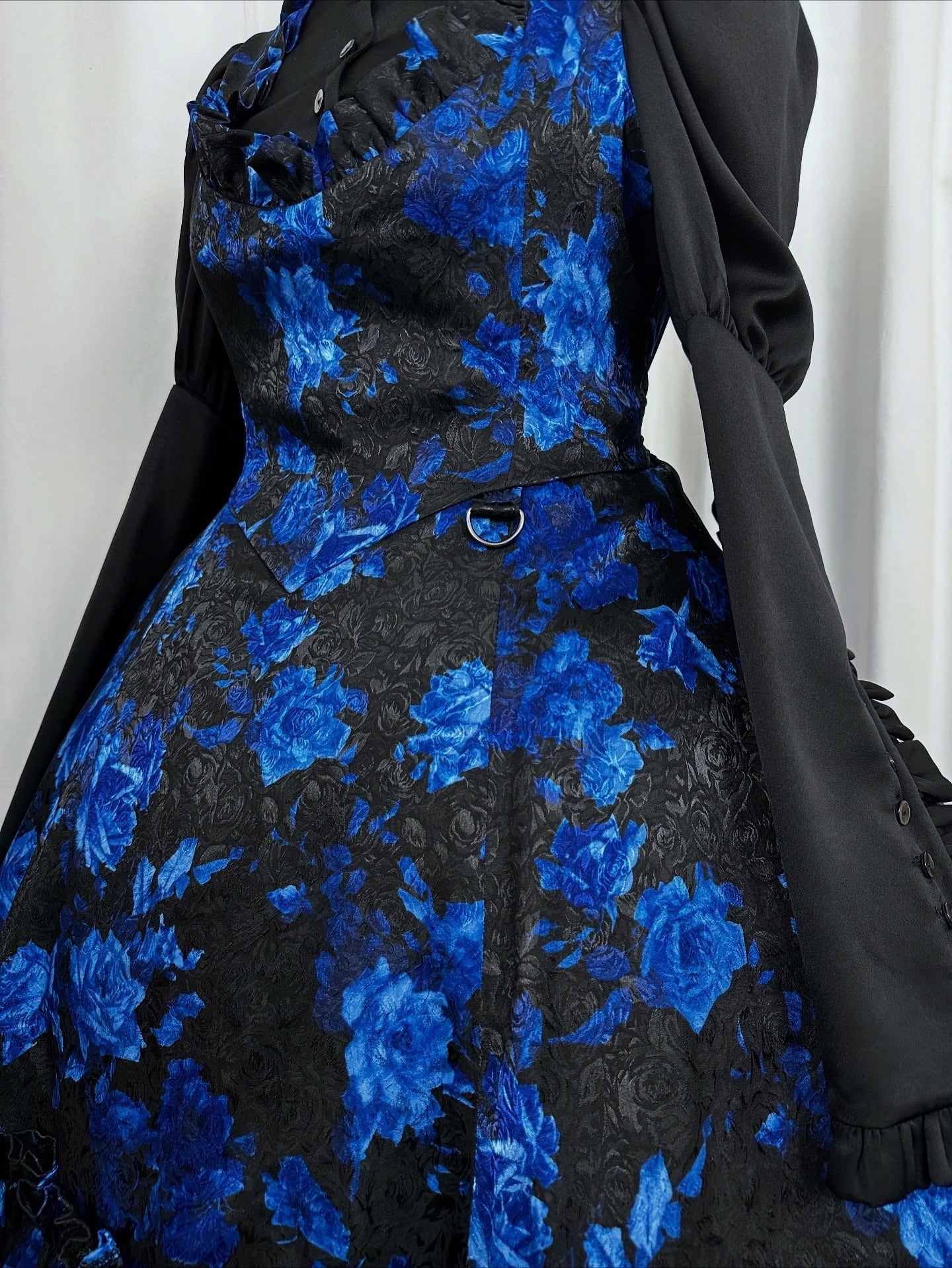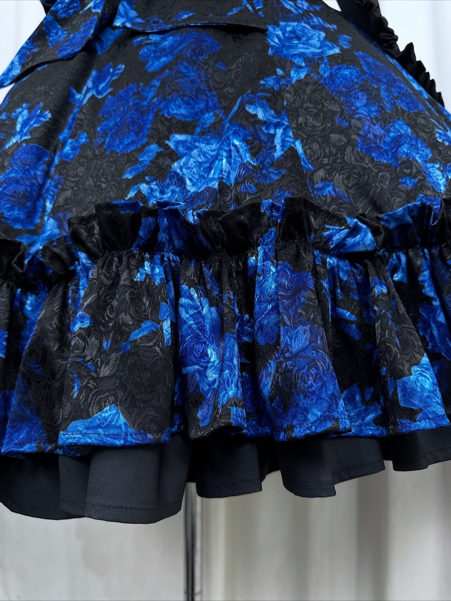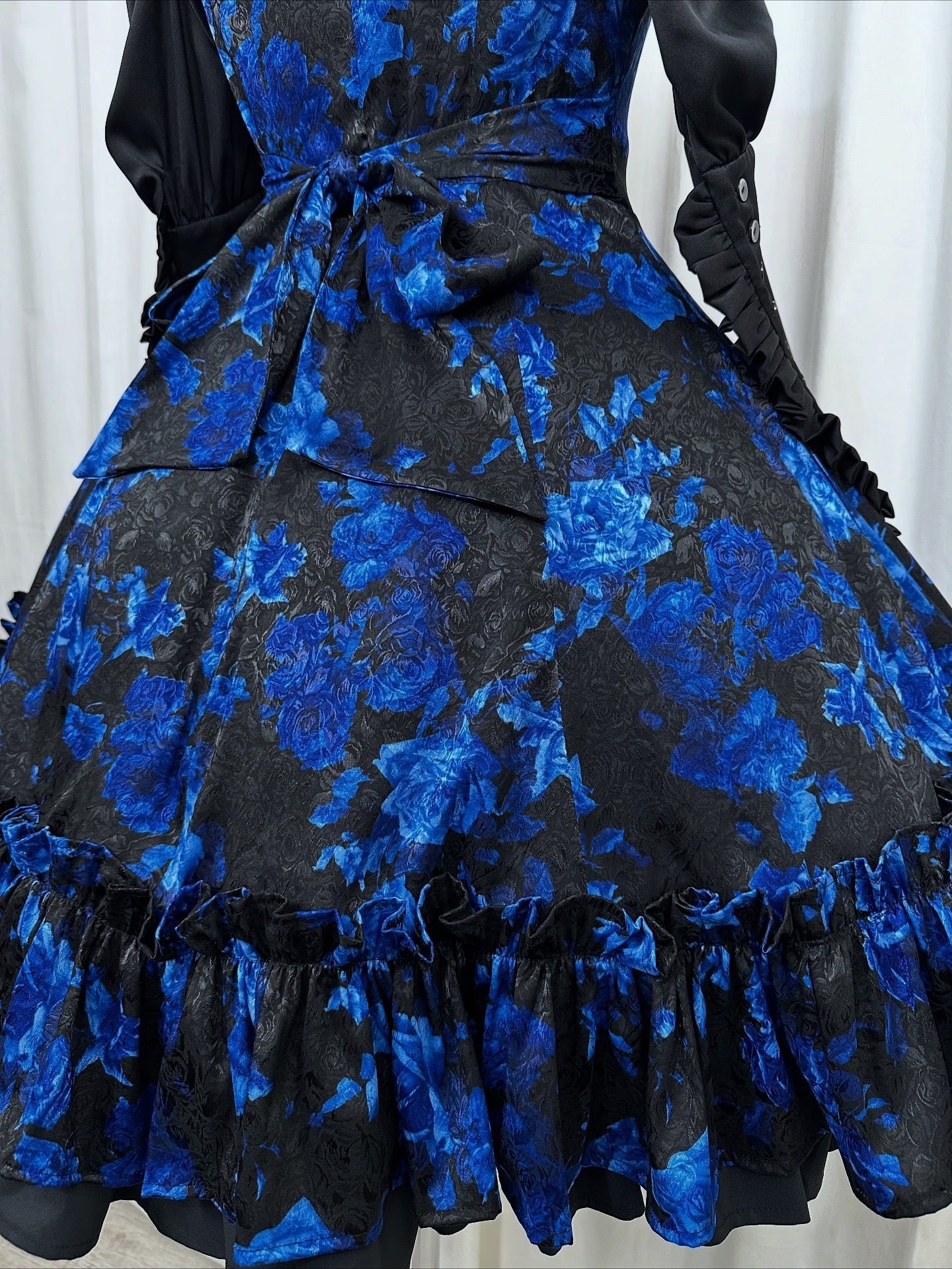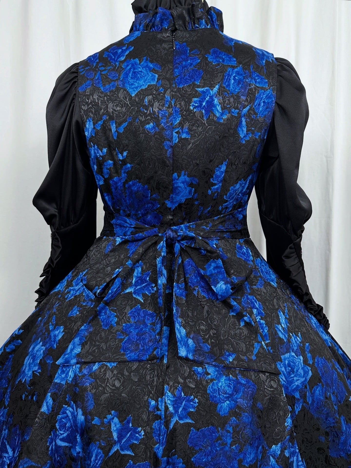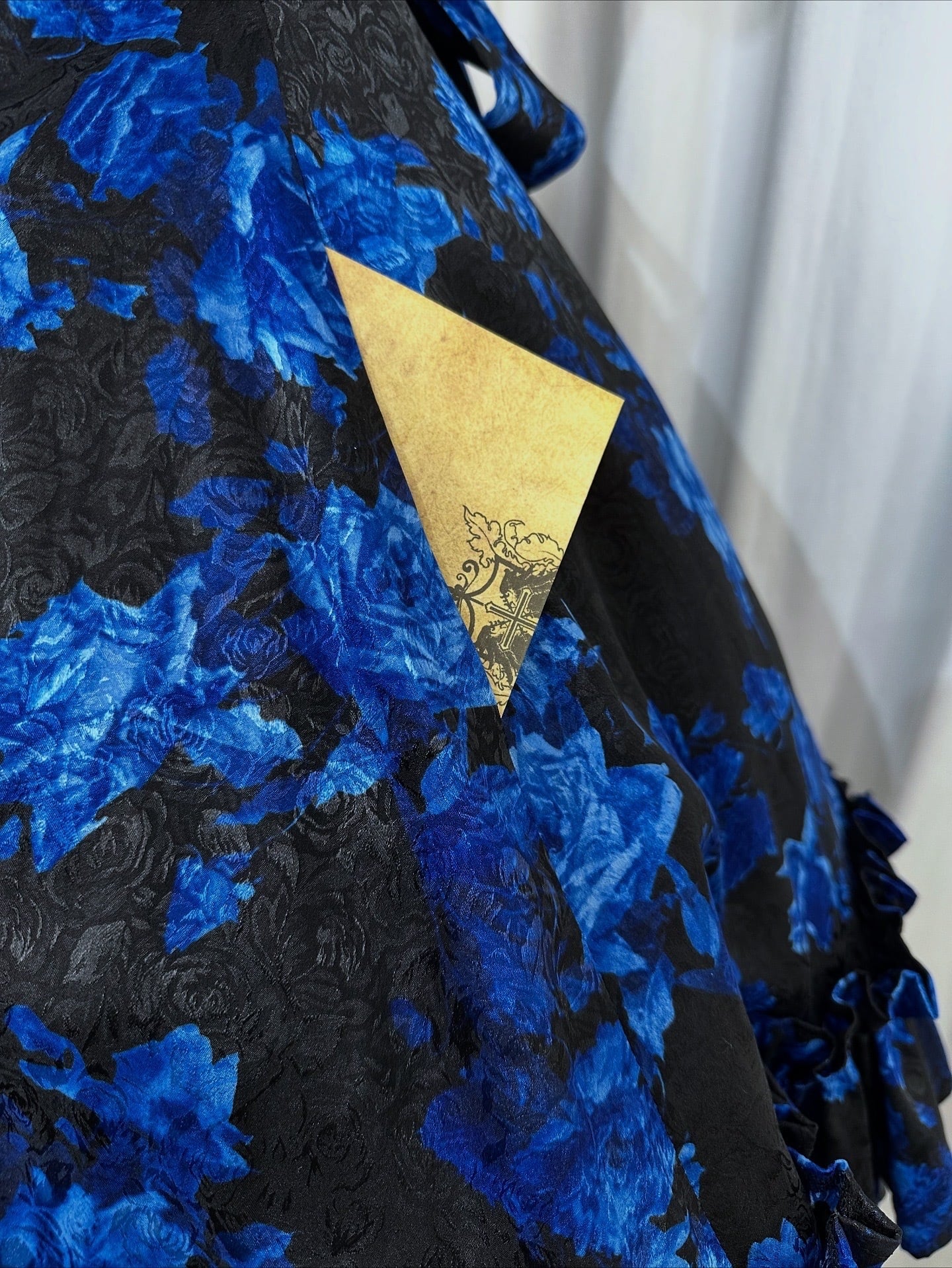 グランド:ロイヤルブルーローズ・ジャカード生地